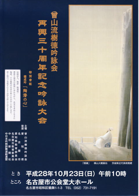 私達、曾山流樹徳吟詠会は、平成28年10月23日、名古屋市公会堂に於きまして、再興三十周年記念吟詠大会を開催させていただきました。